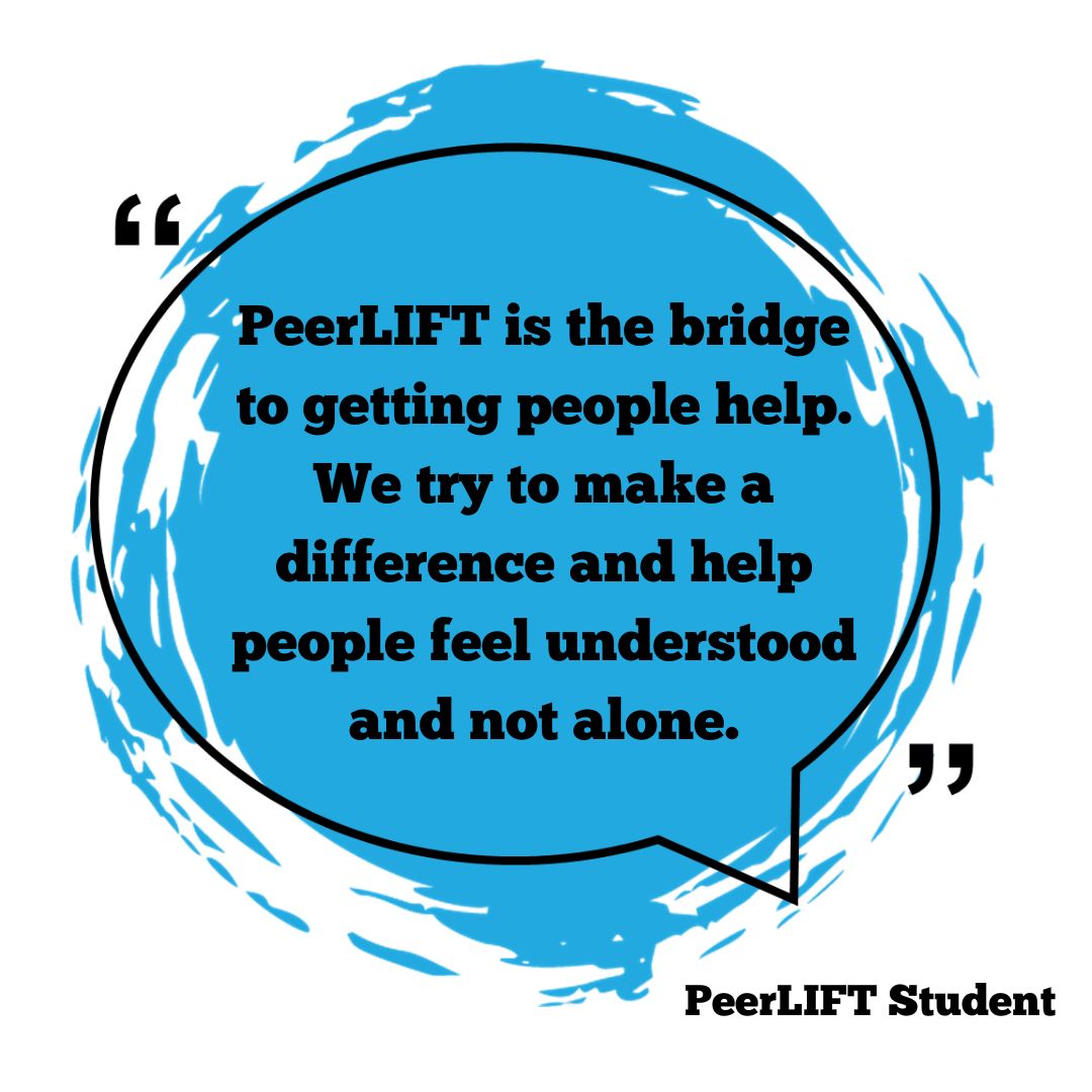 PeerLIFT is a student-led mental health awareness and suicide prevention program administered by Discover You™. LIFT stands for Listen, Inspire, Feel, Thrive. Students in the program create their own, unique, student-led awareness campaign to break down stigma of mental health and create a culture of belonging and community within their schools.